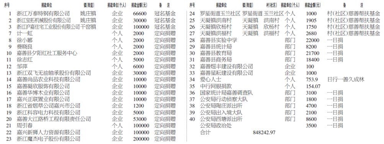 2020年8月1日~2020年8月31日,县慈善总会收到“爱心献慈善”善款共848242.97元。在此,向所有奉献爱心的企事业单位和个人致以最崇高的敬意!现将接收的捐款情况公告如下(排名不分先后):