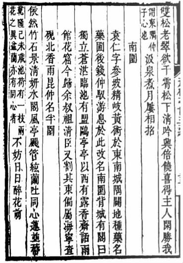 钱棅是钱士升的次子,江南才子,明末抗清义士。南园也不再是医者的药田,而成了诗人雅集唱和的所在。如魏允柟的《南园杂兴诗》“相逢湖海客,共拟竹枝游”,孙在镐的《游钱文部南园诗》“小结疏篱代短墙,傍篱一带绿垂杨。窗敲竹叶琴声碎,月印松梢鹤梦长”,蒋睿的《南园诗》“夜雨怜宵柝,春残乱晓莺。谢公遗泽在,未许曲池平”等等,钱棅将唱和之作收录在《南园唱和集》中,流传至今。