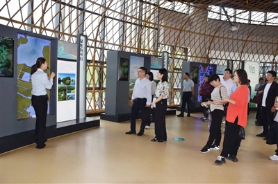 4月19日上午,互学团一行来到嘉善祥符荡,实地考察竹小汇零碳聚落,听取减污降碳创新工作,走访生态岛,了解嘉善通过水生态修复打造“水下森林”,通过“AI”鸟脸识别系统开展生物多样性监测等工作。随后来到长三角生态绿色一体化发展示范区嘉善片区临时展示馆,听取示范区嘉善片区规划建设情况介绍并现场观摩。