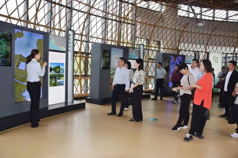 4月18日上午,互学团一行来到江苏同里国家湿地公园,实地考察湿地科普馆,从湿地变迁历史、区域生物多样性现状、传统农业文化等方面,了解同里湿地的历史变革和现状,并通过趣味问答、VR体验、4D场景等科技手段,体验了同里的生物多样性。