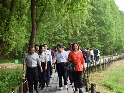 4月18日下午,互学团一行来到上海青西郊野公园,听取了公园的基本情况介绍,并实地考察“水上森林”。青西郊野公园是上海重要的水源保护地和生态保护区,郊野公园内物种资源丰富,“湖、滩、荡、岛”纵横交错,是上海市唯一一个以湿地为特色的郊野公园,其水生生物物种多样堪称上海天然的本土水生物种基因库。