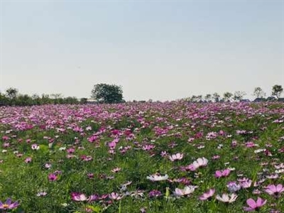 近日,在天凝镇凝北村施家湾,出现了一片近3000平方米的波斯菊花海,成为村民休闲娱乐的打卡地。然而,这片鲜花烂漫的地方,之前是废弃的露天垃圾场。凝北村对这片荒地进行了生态复绿,历时两个多月,这片曾杂草丛生的荒地展现“新颜”。