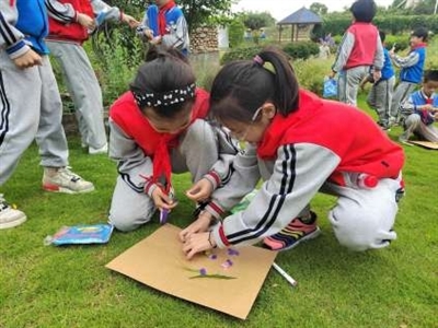 “老师,我找到了37种植物!”“老师,我们45种!”“原来这个就是金橘啊!”近日,大云镇碧云花园迎来了一批小小体验官,来自实验小学的45名学生在植物园里寻找、观察,认识花与叶、果实和种子,收集各种各样的植物样本,聆听学习关于植物的百科知识。