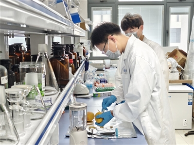 当天上午,当黄桃送达江南大学后,该校环境与生态学院研究生吴晨晨与团队随即投入紧张的样品预处理工作:清洗、去皮、切块、榨汁、分装冷藏,为后续精密检测铺平道路。